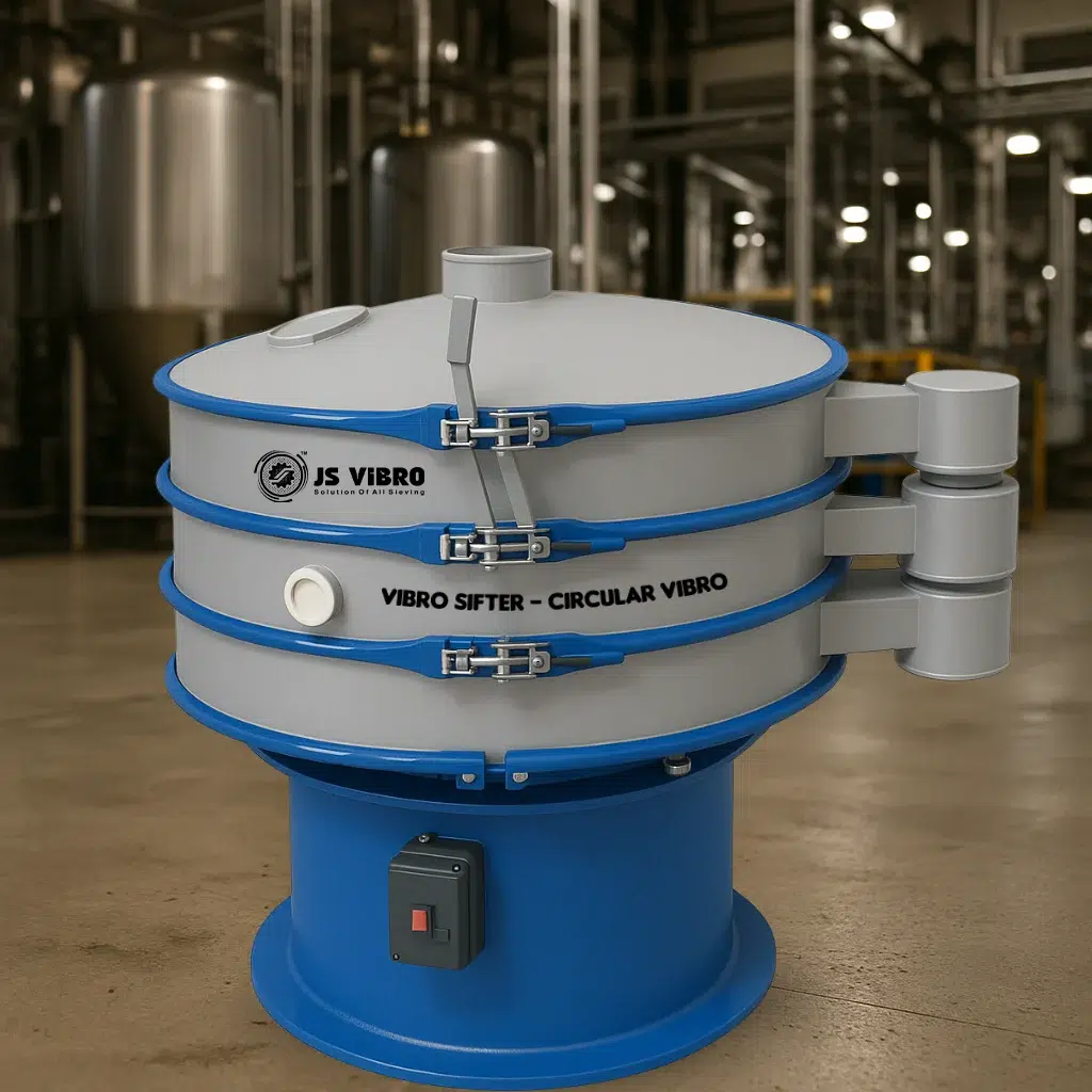 The Circular Vibro Separator functions using a vertically mounted motor that produces vibration through eccentric weights. These vibrations generate spiral and horizontal material movement across a circular screen, enabling efficient separation, grading, or filtration of solids from solids or solids from liquids. Suitable for powders, granules, slurries, and fine particles, it delivers uniform screening with minimal mesh clogging.